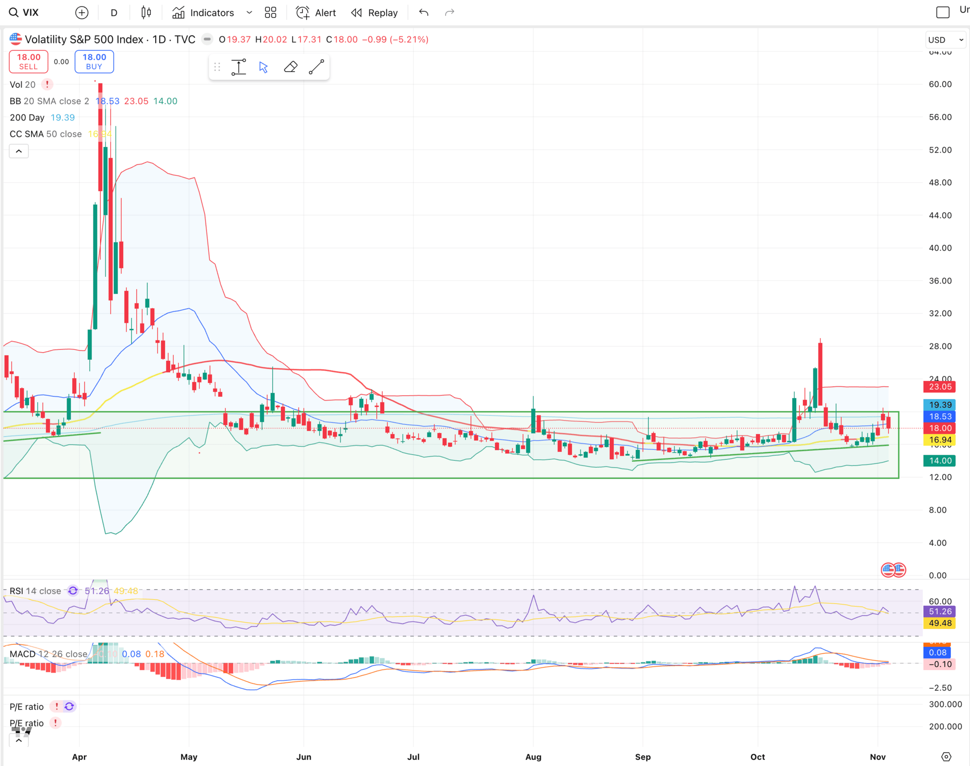 The bulls stepped in to defend the market today. $QQQ ( ▲ 0.65% ) looked like it might drop to the 613 area, but buyers quickly reversed the move and pushed prices higher. $VIX ( ▼ 5.21% ) briefly spiked near 20 but settled back down to 18 by the close, a sign of stability returning.