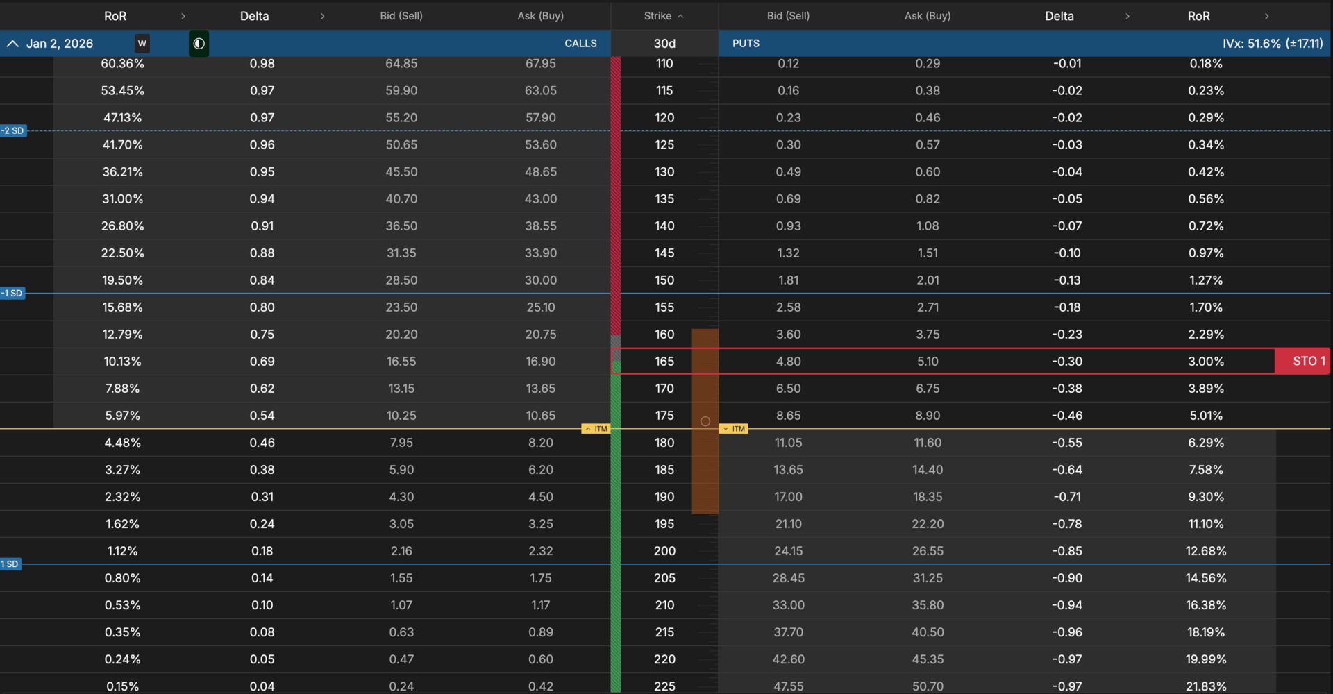Strategy: Sell the January 2nd 165 strike put