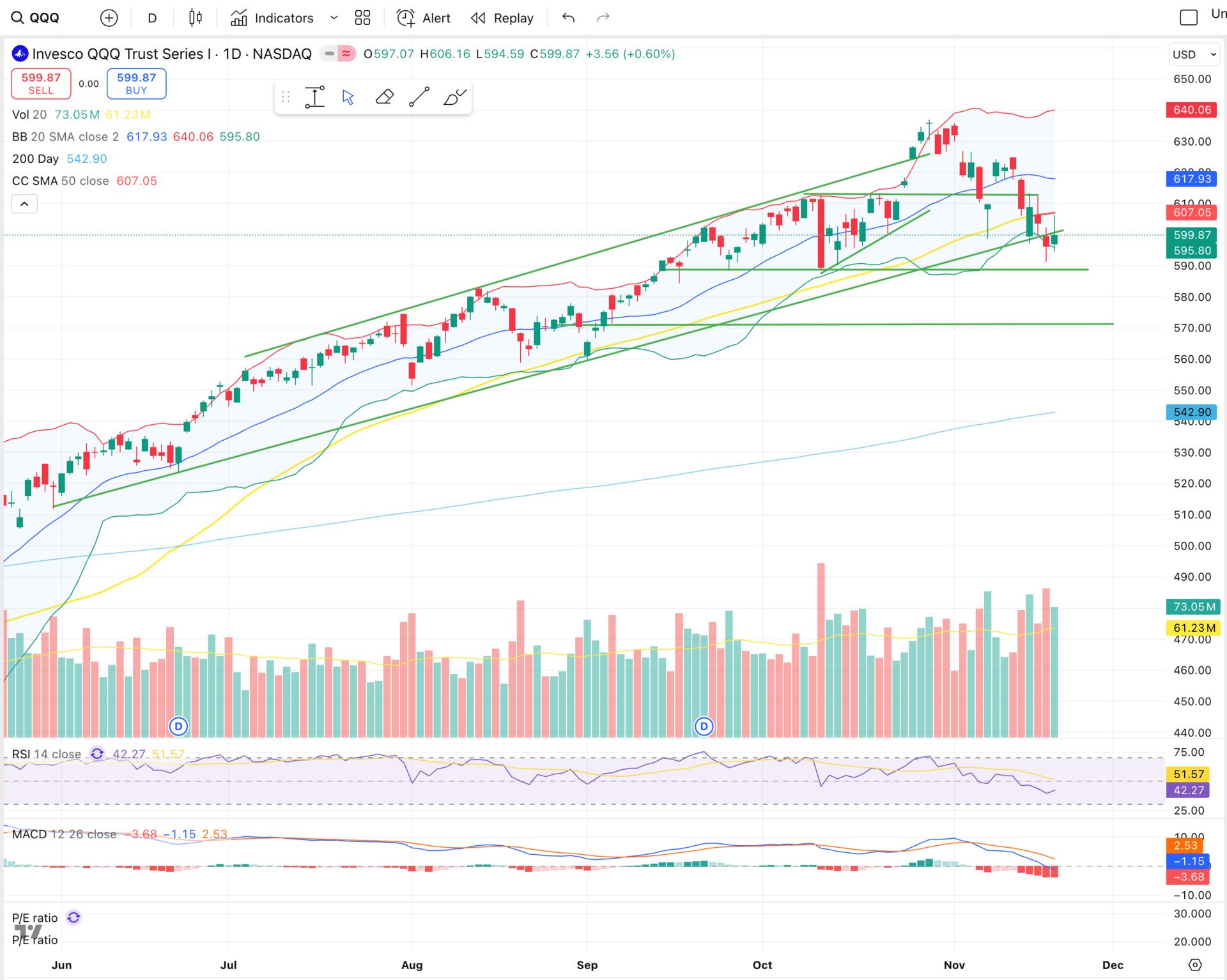 $QQQ ( ▲ 0.6% ) is now set to open around 609 to 610, and while we may see some initial profit taking, the bigger picture points toward a steady bullish rally into Christmas. With the $VIX ( ▼ 4.17% ) likely falling under 20 tomorrow, I’ll be taking profits on select positions to raise my cash from 14 percent back toward 20 percent, bringing me closer to my VIX cash allocation levels. NVIDIA gave us the catalyst we needed, and now we simply wait to see how the non farm payrolls report comes in.