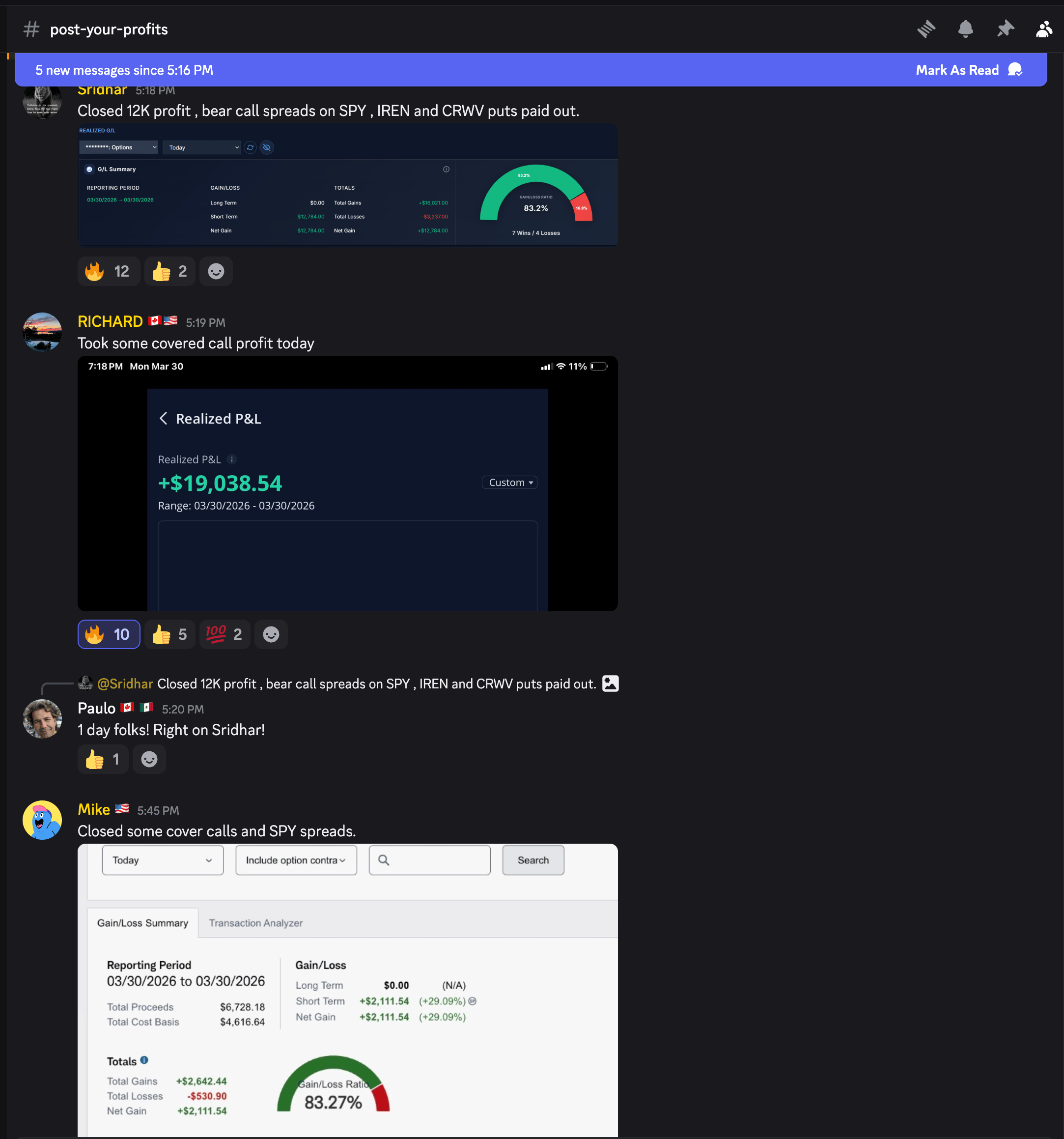 Even in this current market, we’re seeing strong execution across the community with Sridhar locking in $12,000, Richard bringing in $19,000 from covered calls, and Bill closing out $2,000 in profits.