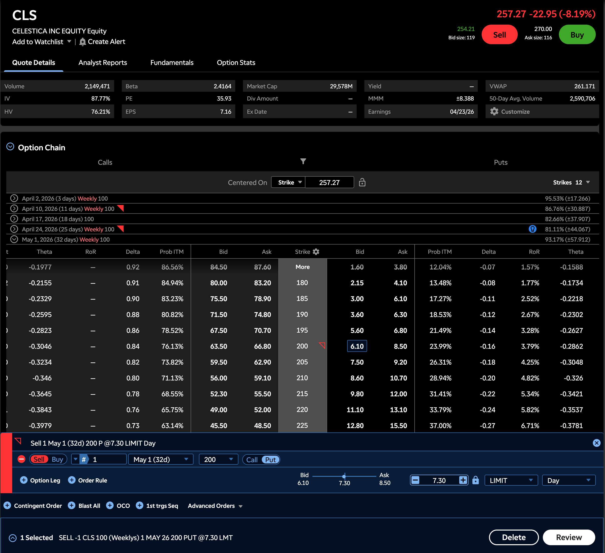 Strategy: Sell the May 1st $200 put