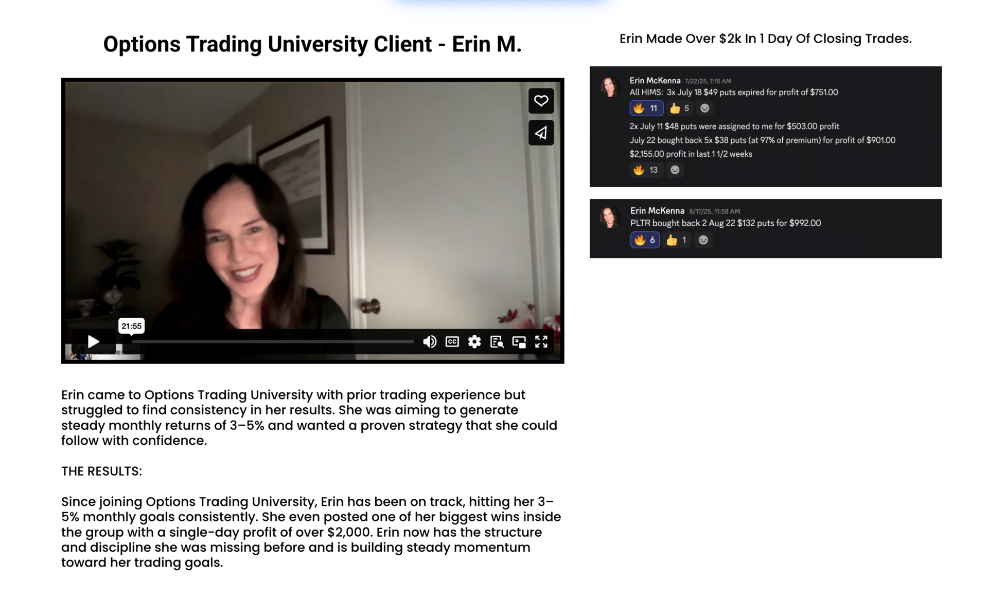This week’s spotlight is on Erin, who began with us hitting consistent 3 to 5 percent monthly goals and has now transitioned into trading full-time after leaving her corporate job. Her growth has been remarkable.