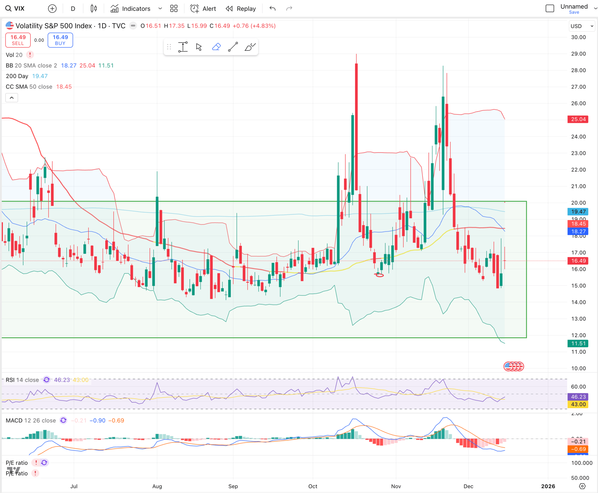 This is a more defensive, income-focused setup. SOFI closed around $25.82 and is nearing the lower Bollinger Band on the daily chart, with the 23 strike sitting well below that level. With additional rate cuts still expected next year and SOFI already beaten down, this trade offers a high probability of simply collecting income without assignment.