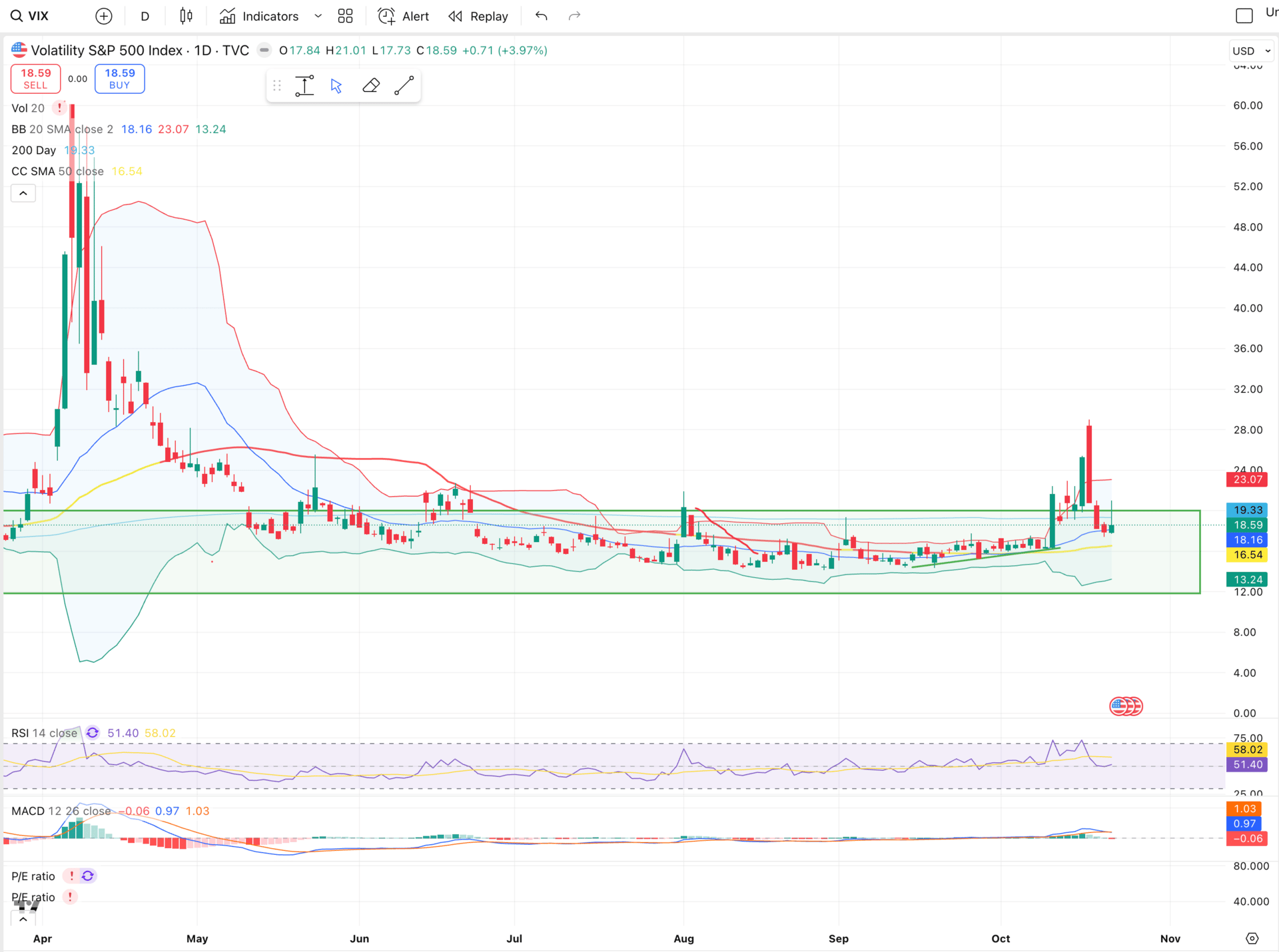 VIX remaining elevated at $18
