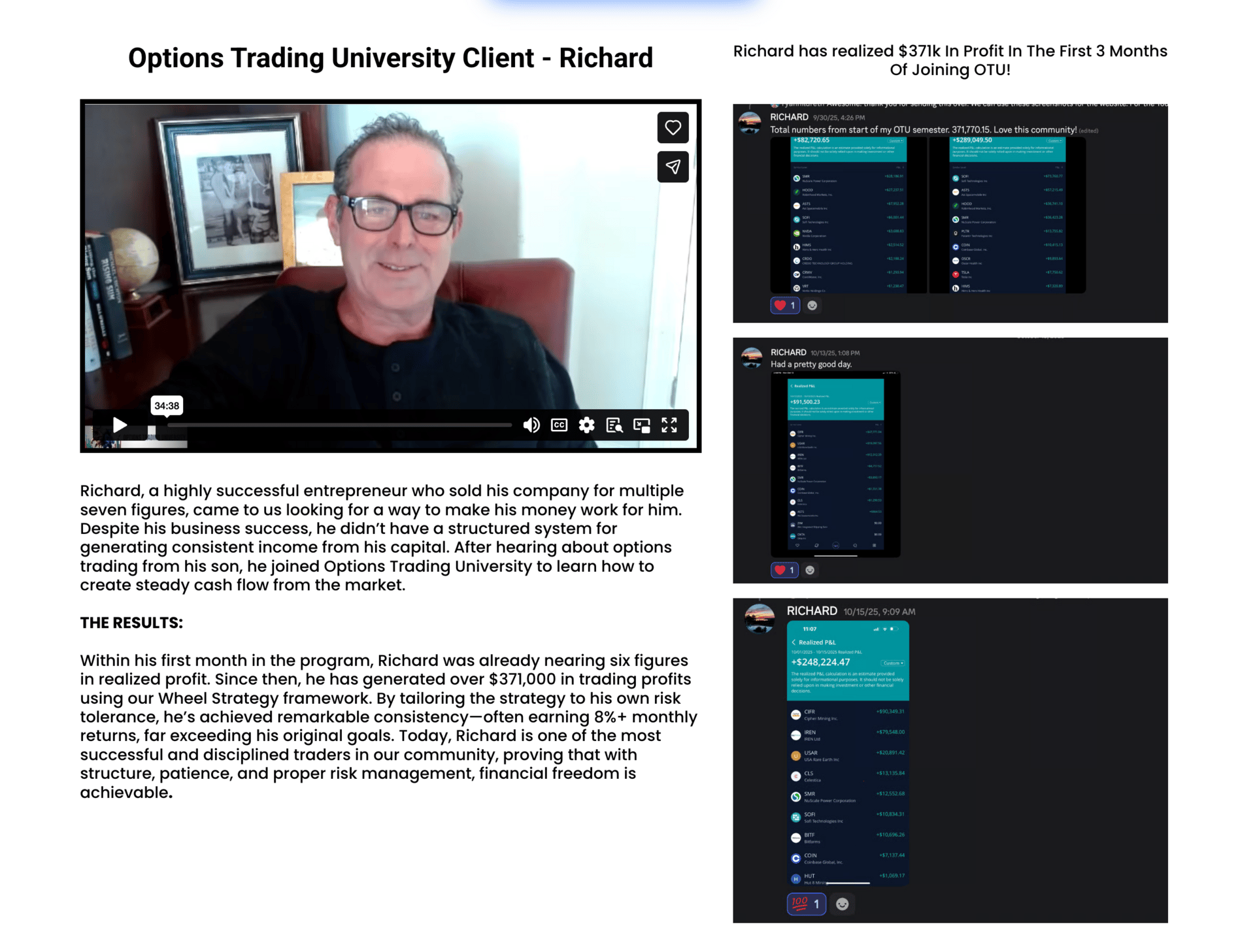 Richard joined the program just a few months ago and made $371,000 in his first stretch following our principles. Since then, he has now crossed over $600,000 in total gains since our interview. His growth has been incredible to watch, and today several other clients also closed out strong trades, including one who made $20,000 for the week, Mike who closed a $2,000 winner, and Terry who locked in $1,200 heading into the weekend.