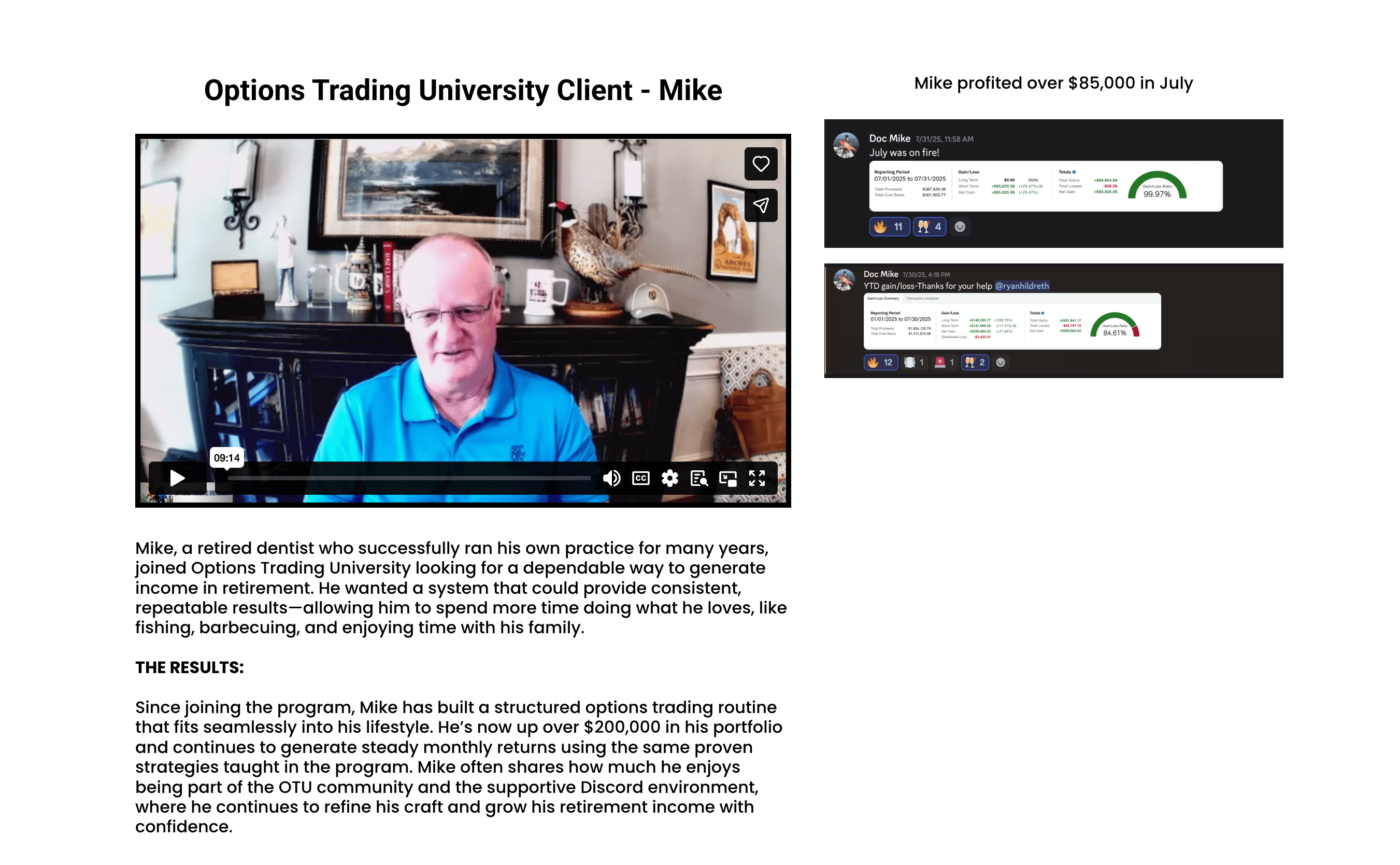 This week’s spotlight is on Doc Mike, who retired last year and quickly found consistency in his trading. Within his first few months, he generated $85,000 in profits, and by the time we sat down for his interview, he had surpassed $200,000 in total portfolio gains.