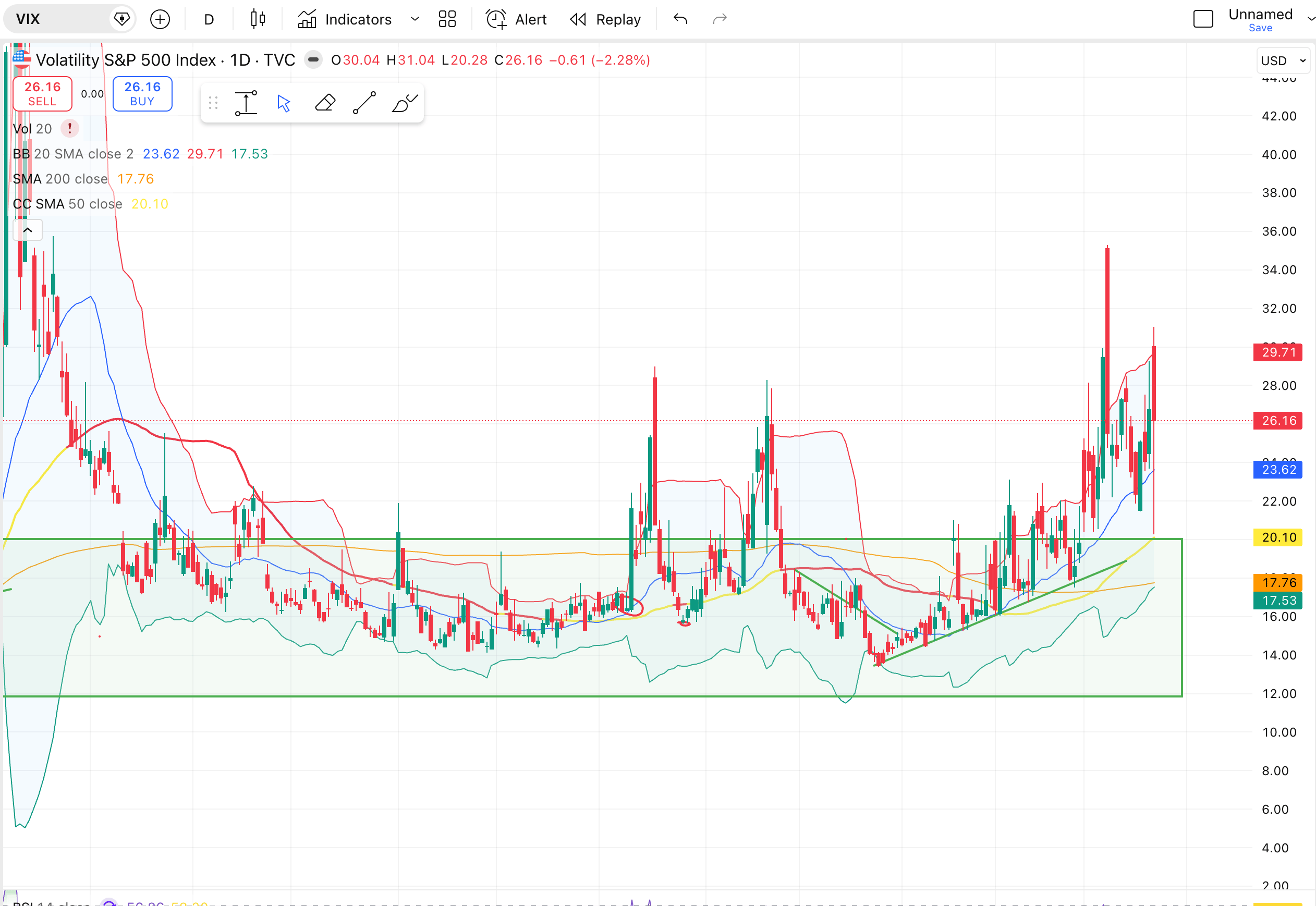 The $VIX ( ▼ 2.35% ) spiked to 30 and closed around 26, so volatility is still elevated. If we can see the VIX trend back toward 20 or below, that would be a strong signal for broader recovery. For now, I’m sitting at about 15% cash and focusing on premium-generating strategies like cash-secured puts and covered calls while remaining selectively bullish.