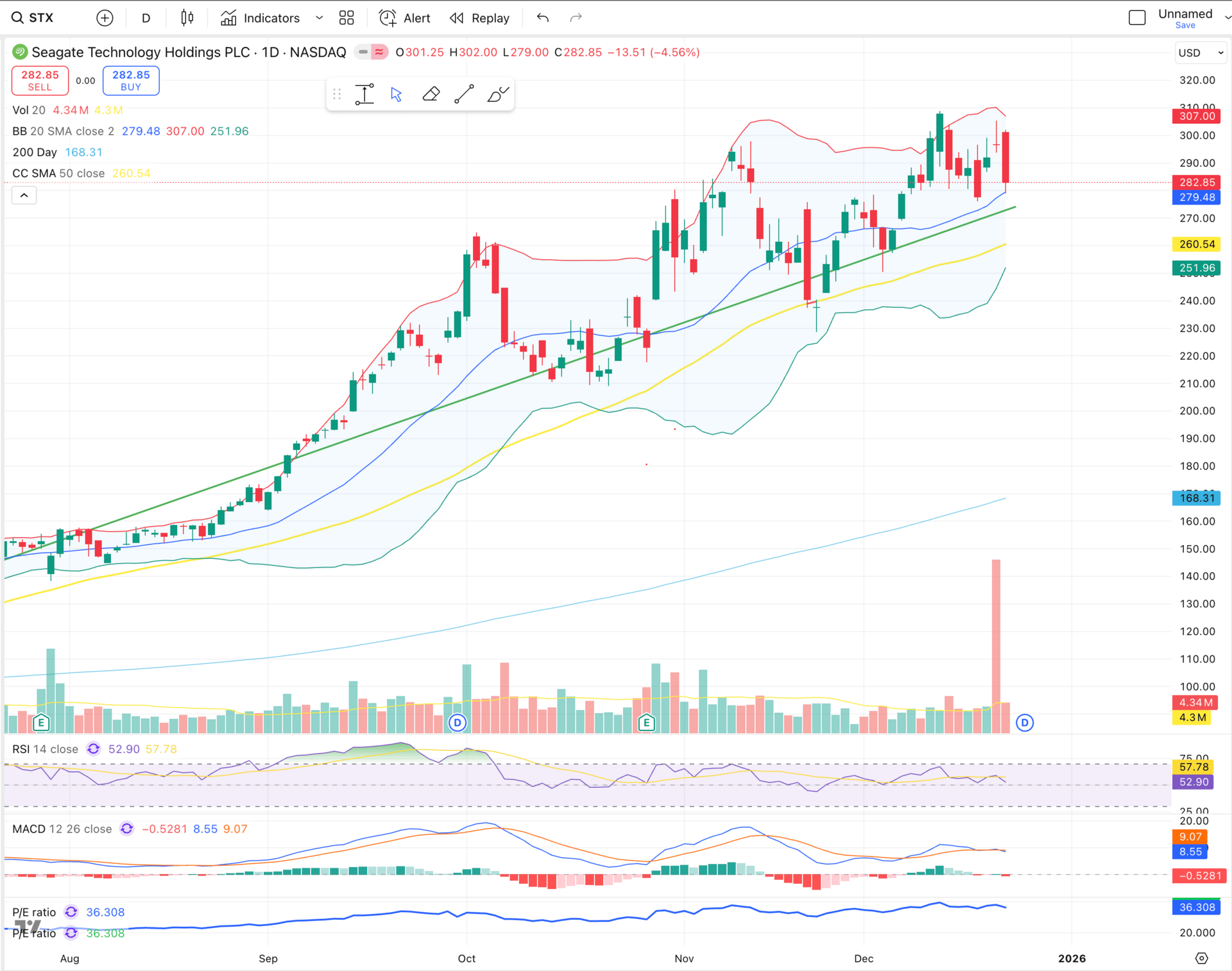 Seagate pulled back roughly 4.5% today, creating a strong earnings setup with elevated implied volatility. This trade allows us to collect a solid return on a high-quality company while defending a strike that sits within the expected move. If assigned, $255 would represent an attractive entry, but odds favor the stock stabilizing or moving higher post-earnings.